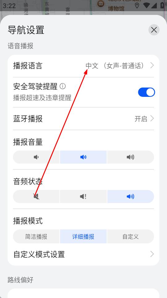 4、在导航设置页面中,点击播报语言。