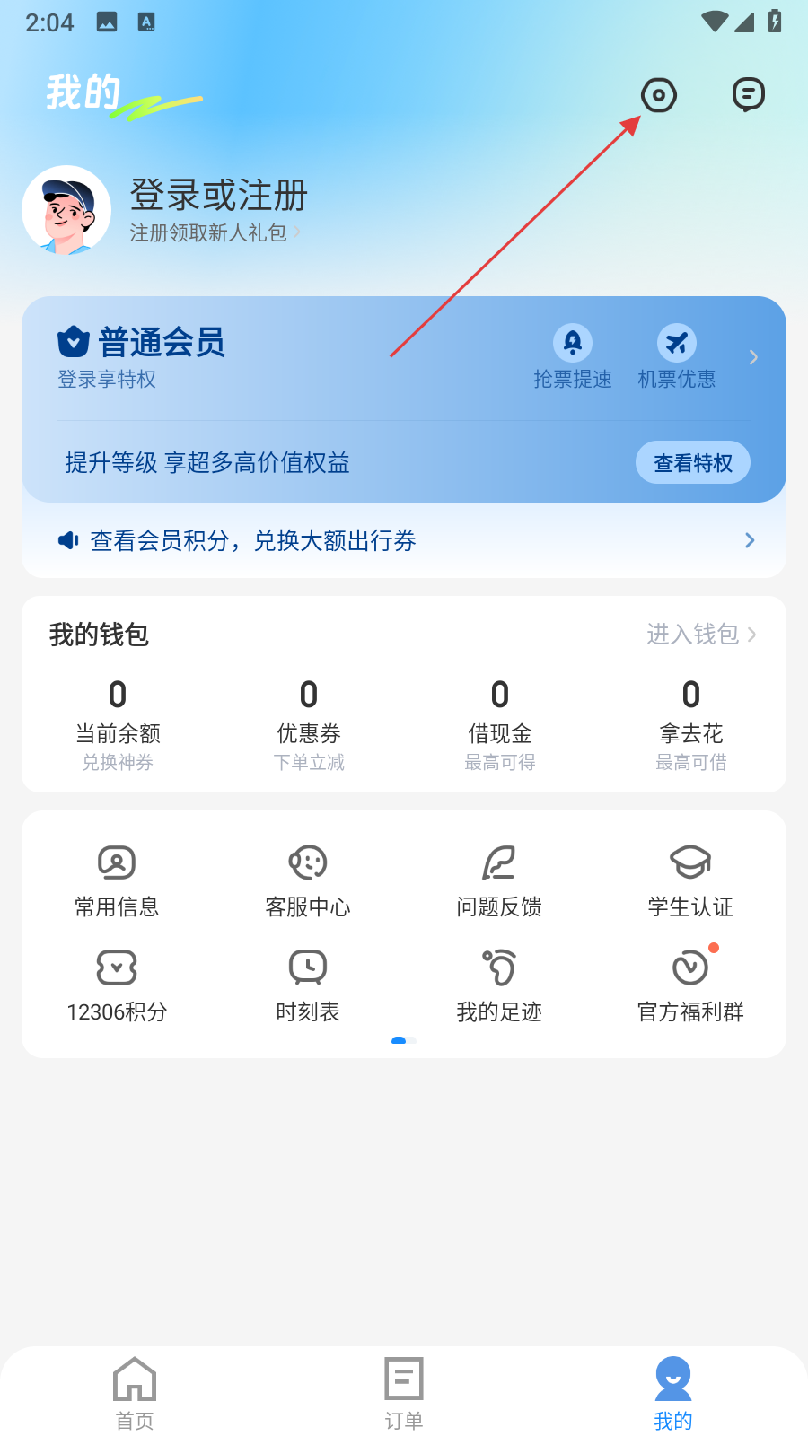 1、打开智行旅行APP,点击底部导航栏我的,进入个人页面。