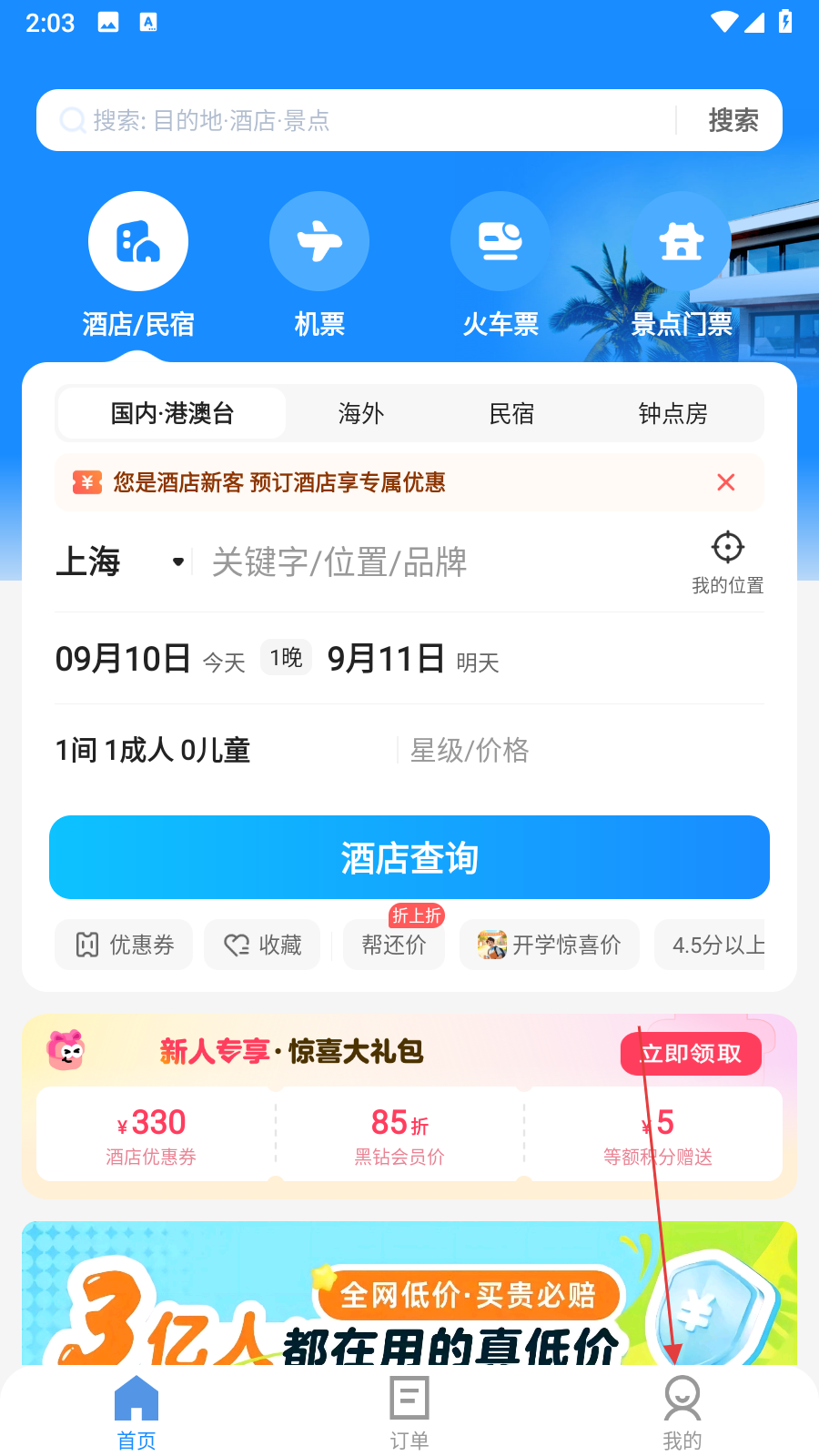 3、酒店成长礼包全新上线,用智行订酒店,越用越省钱!