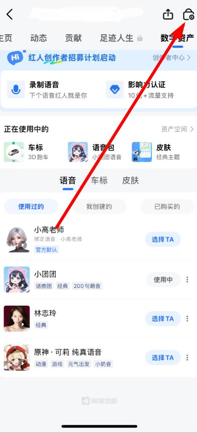 1、打开高德地图进入个人页面,点击右上角数字资产旁的图标进入隐私设置页面。