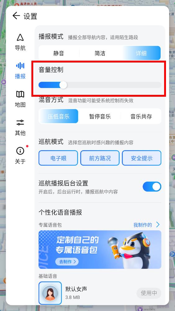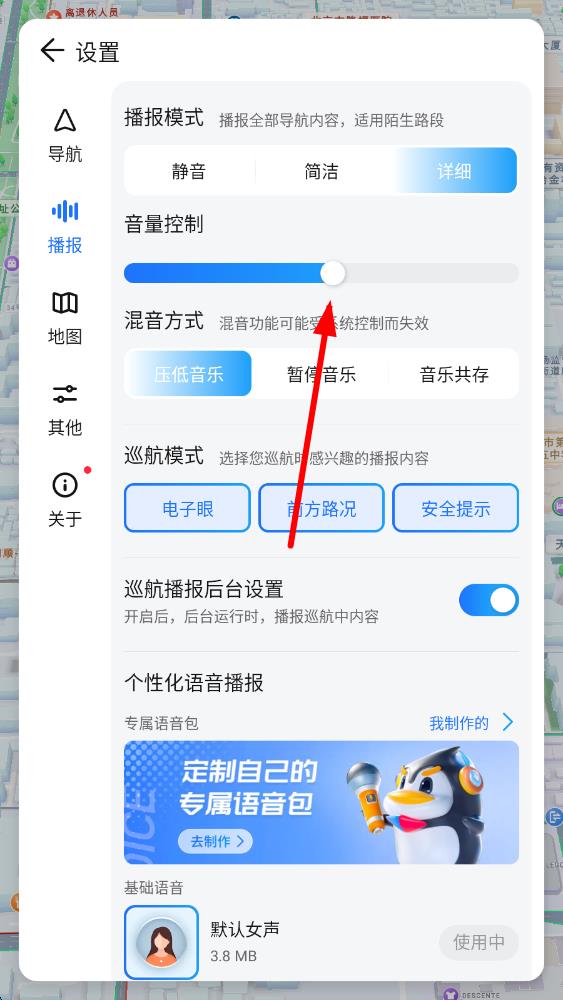 4、左右拖动音量控制的滑块,即可对腾讯智驾地图的语音播报音量进行调节。