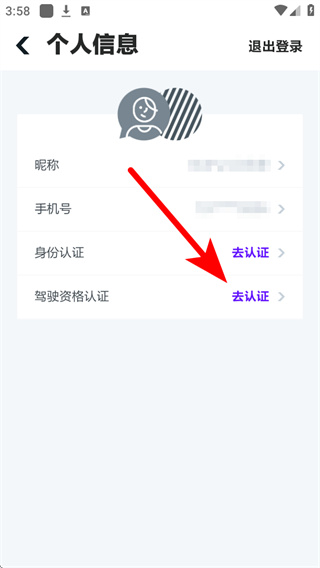 3、在个人信息页面找到驾驶资格认证,点击右侧的去认证。