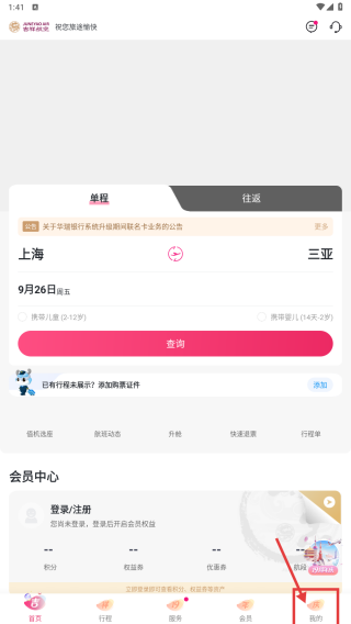 3、申请特色服务:如需携带宠物出行,提前48小时在APP提交“萌宠飞”服务申请,上传宠物免疫证明等材料并完成购票;通过“关怀通道”可直接申请无陪儿童服务或查询遗失物品进度。