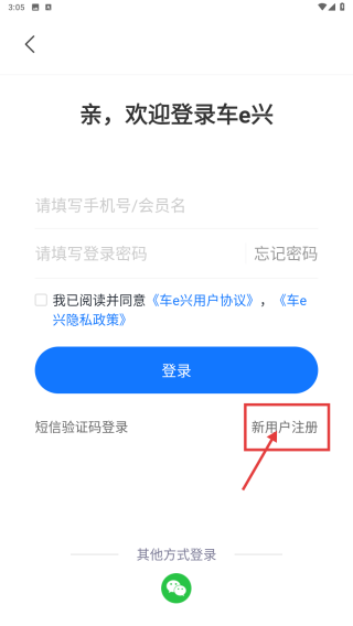 3、选择新用户注册选项,进入手机号注册页面。