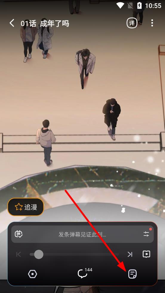 1、打开哔哩哔哩漫画APP,进入漫画阅读界面,点击屏幕任意位置唤出底部菜单栏,点击底部菜单栏右侧类似书本的目录按钮。