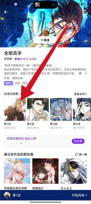 4、在详情页面中选择要观看的章节,即可开始阅读漫画内容。