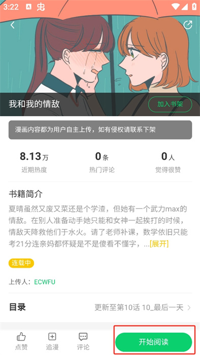 4、最后我们在作品的详情界面点击右下角的【开始阅读】就可以阅读作品。