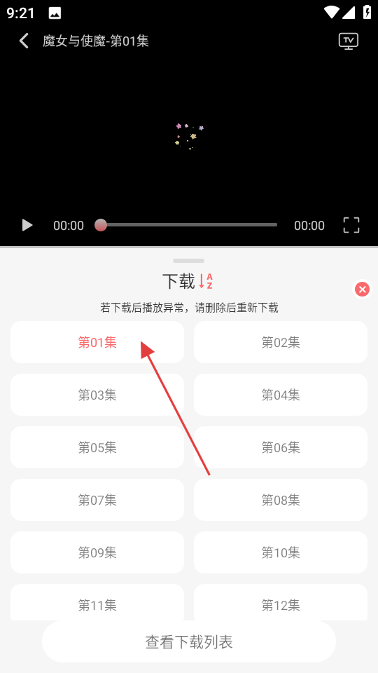 3、在剧集页面,点击下载,进入下载选集页面。