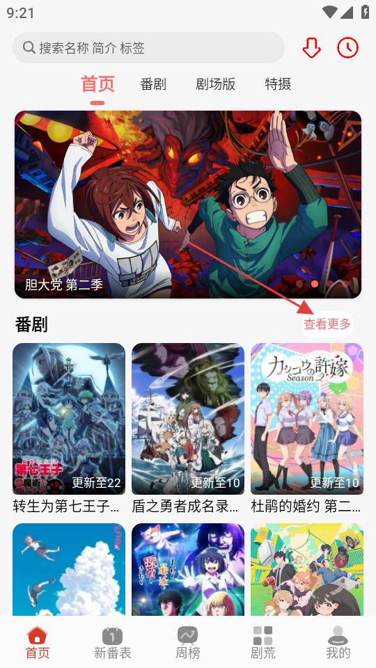 1、在动漫类应用首页,点击番剧板块的查看更多,进入番剧筛选页面。