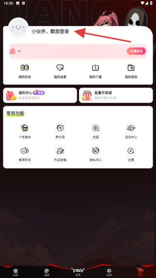 2、在个人页面的顶部,点击小伙伴,戳我登录的区域。