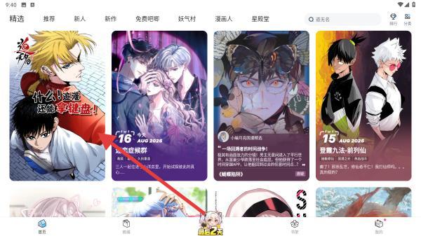 1、进入哔哩哔哩漫画首页,用户可以选择精选的漫画题材,点击后方可进行阅读观看。