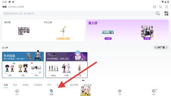 2、点击下方商场的页面,用户可以进入排行榜点击关于漫画角色的商品,也可在比如ip内进行选择。