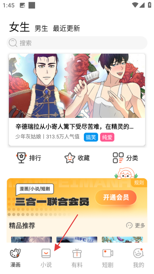 1、点击页面底部的小说按钮,进入小说页面。
