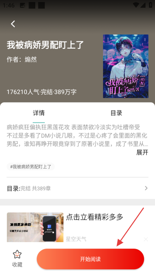 4、在小说详情页,点击开始阅读按钮,开始阅读小说。