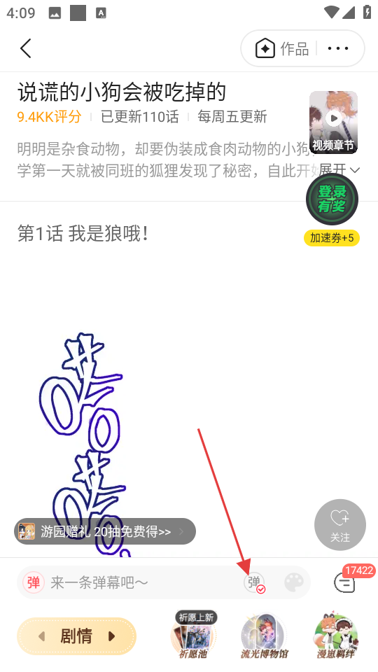 3、在作品详情页,可点击弹幕框的小圈圈关闭弹幕。