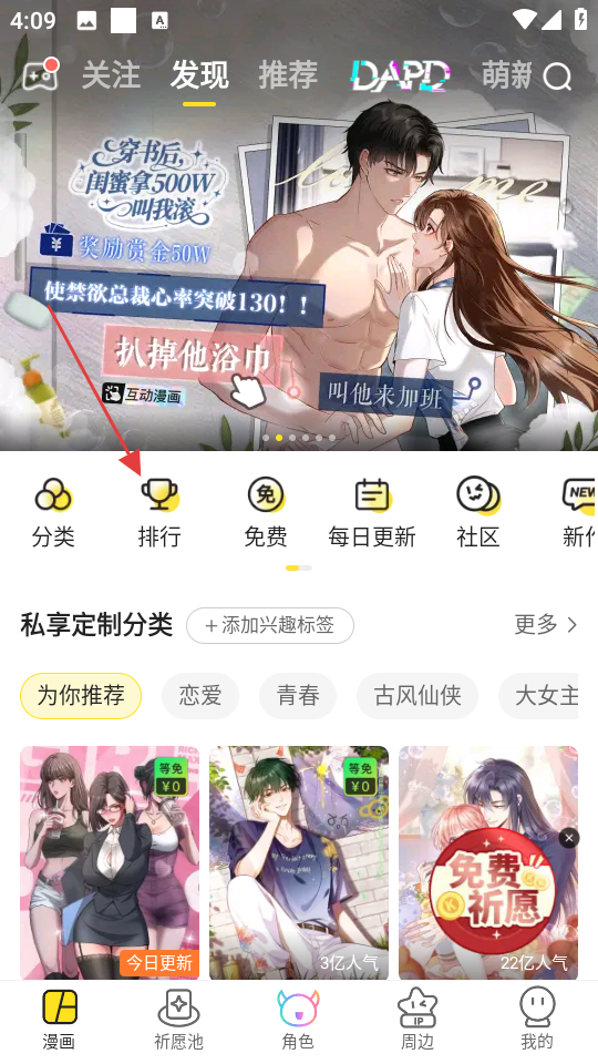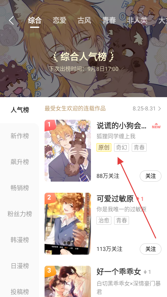 2、在人气榜页面,点击感兴趣的漫画,进入该作品详情页。