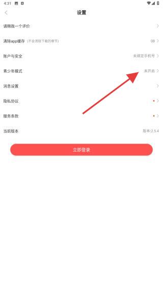 4、在设置页面内,找到并点击青少年模式,点击即可开启。