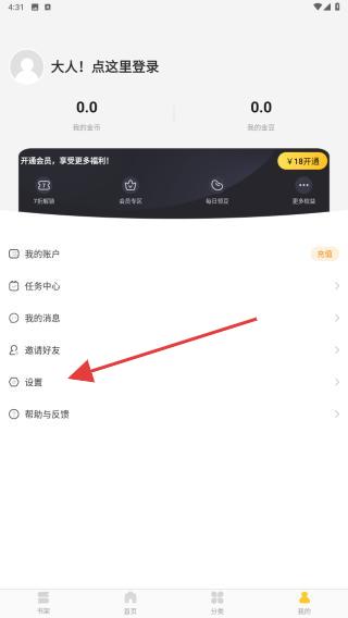 3、进入我的页面内,点击设置的功能按钮。