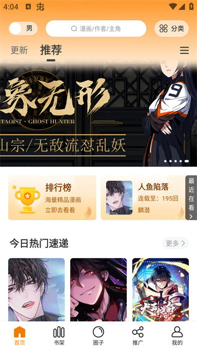 3、点击排行榜,就可以查看平台热门作品,这样就可以不用找就能够看到热门的漫画作品;