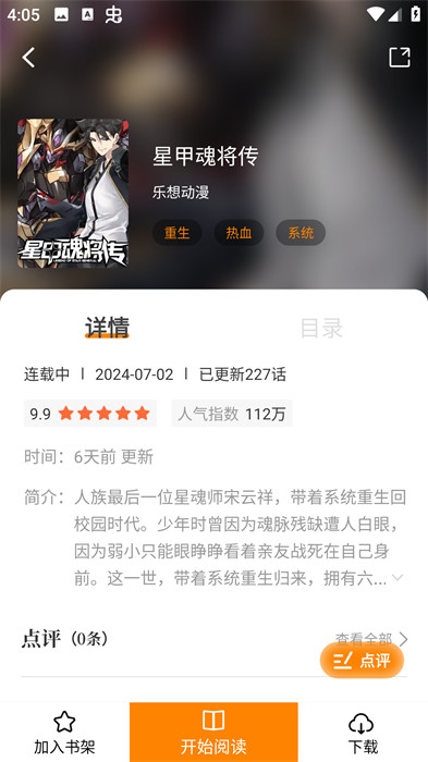 4、进入到漫画详情界面之后,就可以点击下方的【开始阅读】欣赏漫画内容。