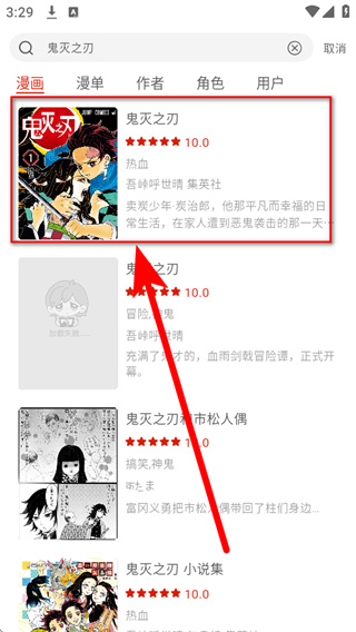 3、在搜索结果列表里,点击目标漫画,进入该漫画的详情页面。