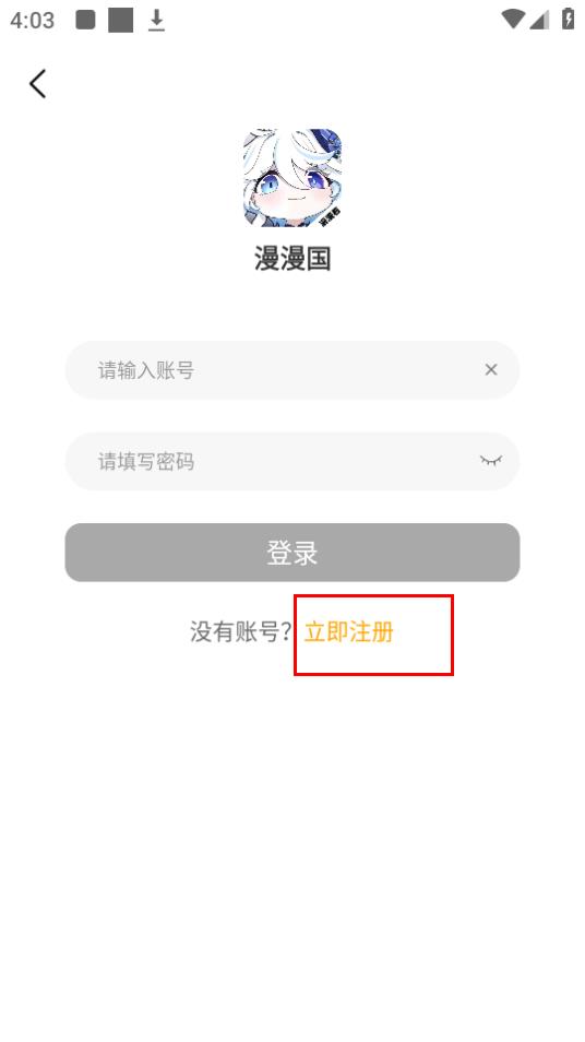 1、打开漫漫国软件,在首页点击右下角我的,进入个人页面。