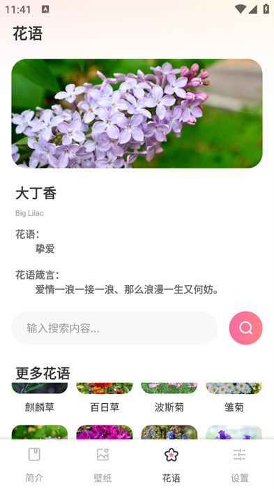5、在搜索框里面可以输入自己想要了解到的花语,能更加快速的找到自己想要了解的;