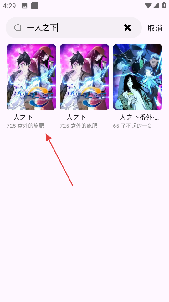 3、在搜索结果中,选择一人之下,进入该书详情页面。