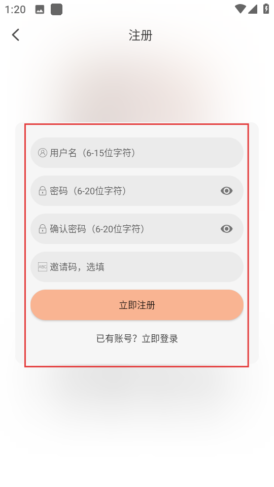4、在注册页面,输入信息后,点击立即注册,即可完成账号注册。