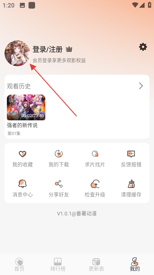1、在番薯动漫首页,点击底部我的,进入个人页面。