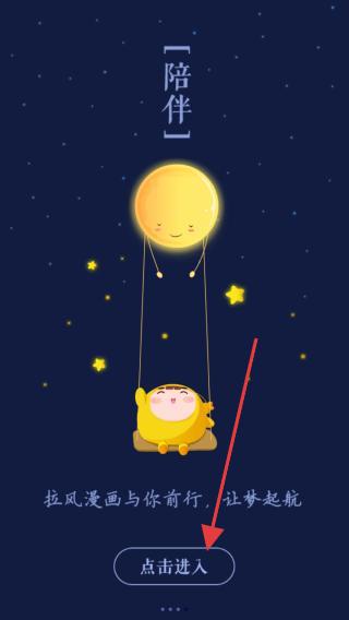 1、打开拉风漫画APP,进入前点击进入的按钮。