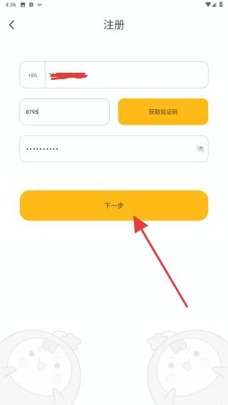 4、将收到的验证码输入进去后,再输入密码并点击下一步的按钮即可。