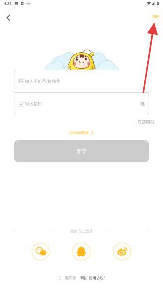 2、进入到登录的页面内,点击右上角注册的按钮。