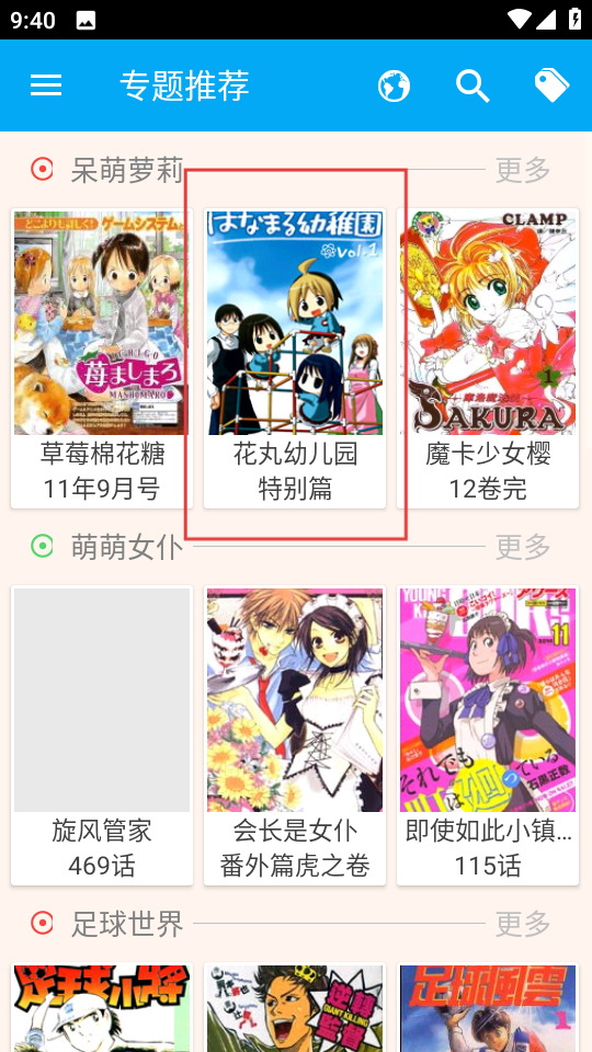 3、在专题推荐页面,挑选心仪的漫画,比如花丸幼儿园特别篇,点击进入漫画详情页。