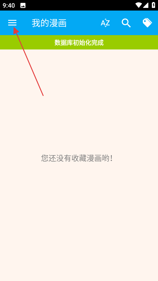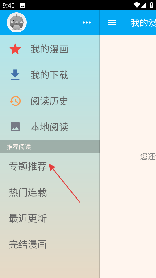 1、进入我的漫画页面,点击左上角菜单按钮,展开侧边栏。