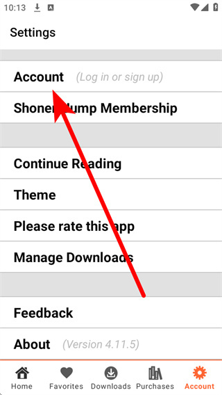 1、打开少年JUMP,点击底部导航栏的Account,进入账户相关页面。