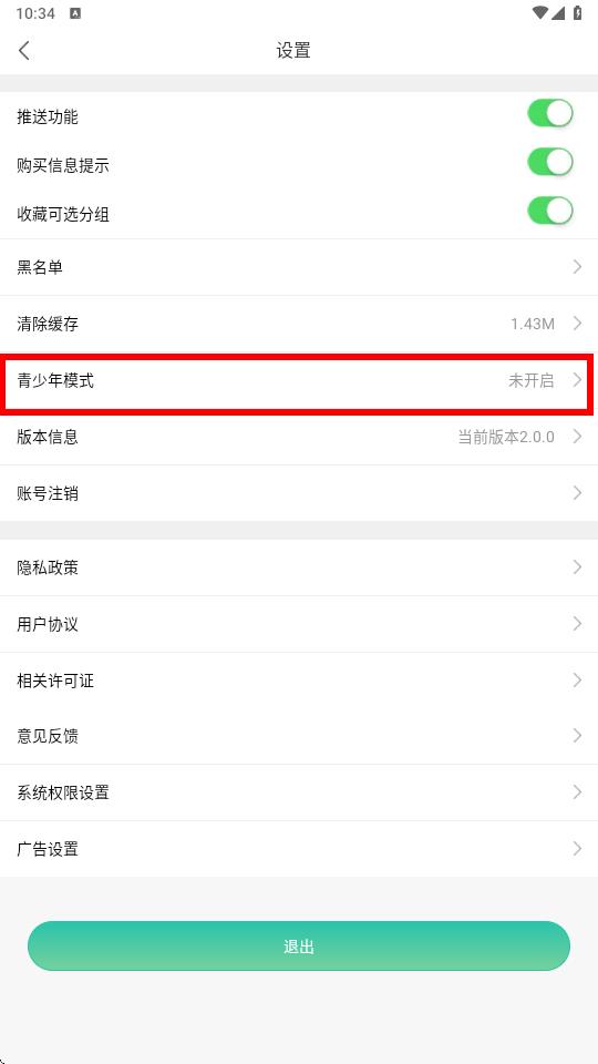 3、在设置界面中找到青少年模式选项,点击该选项后按照提示操作即可开启青少年模式。
