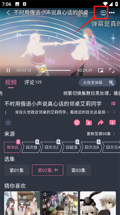 4、进入播放页面观看广告后就可以看动漫了。