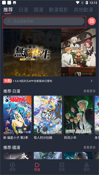 2、输入自己想要观看的动漫,然后点击右侧的搜索按钮;