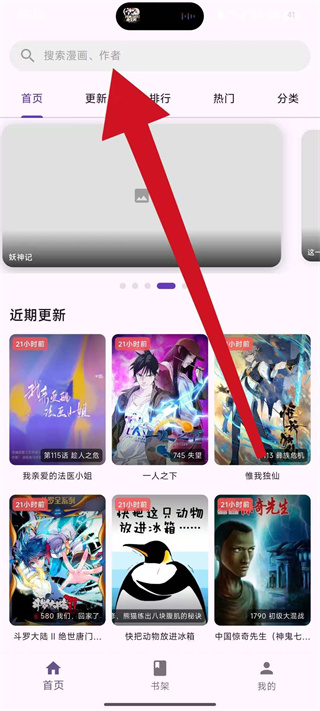 2、在搜索框中输入想要查看的漫画名称,然后点击搜索。