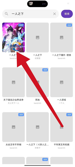 3、在搜索结果列表里,点击目标漫画,进入该漫画的详情页面。