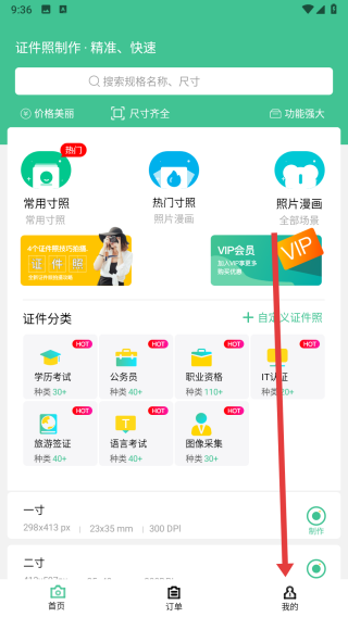 按规格或自定义自动裁切照片,智能证件照轻松制作;包含国内外多种证件照尺寸模板