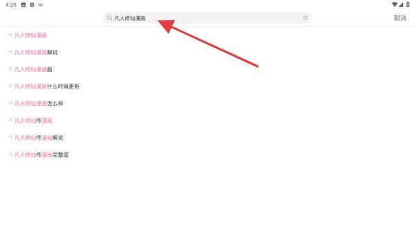 2、启动搜索功能:点击主页面顶部的搜索栏,输入动漫名称,输入过程中会弹出联想推荐。