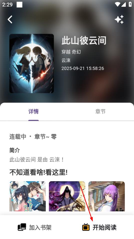 4、在此山彼云间详情页,点击开始阅读,即可阅读漫画。