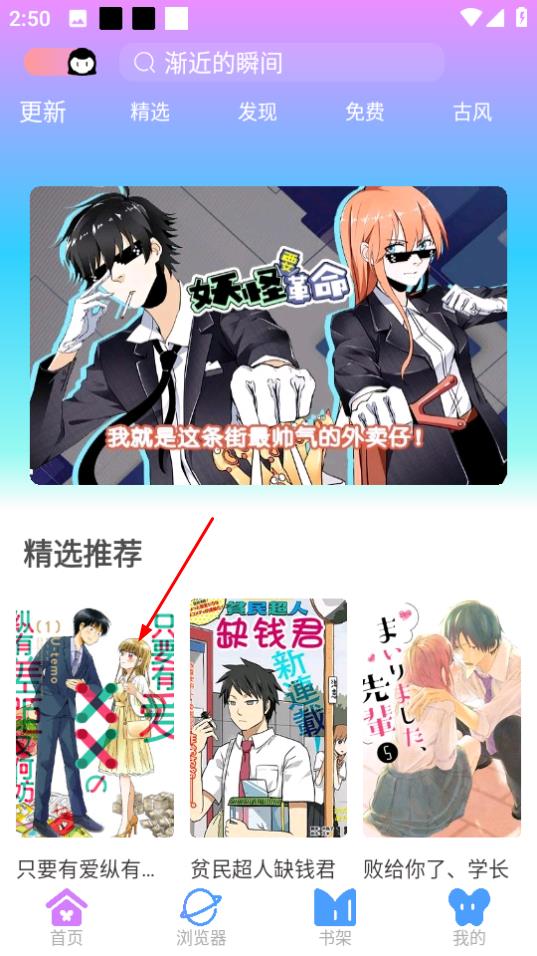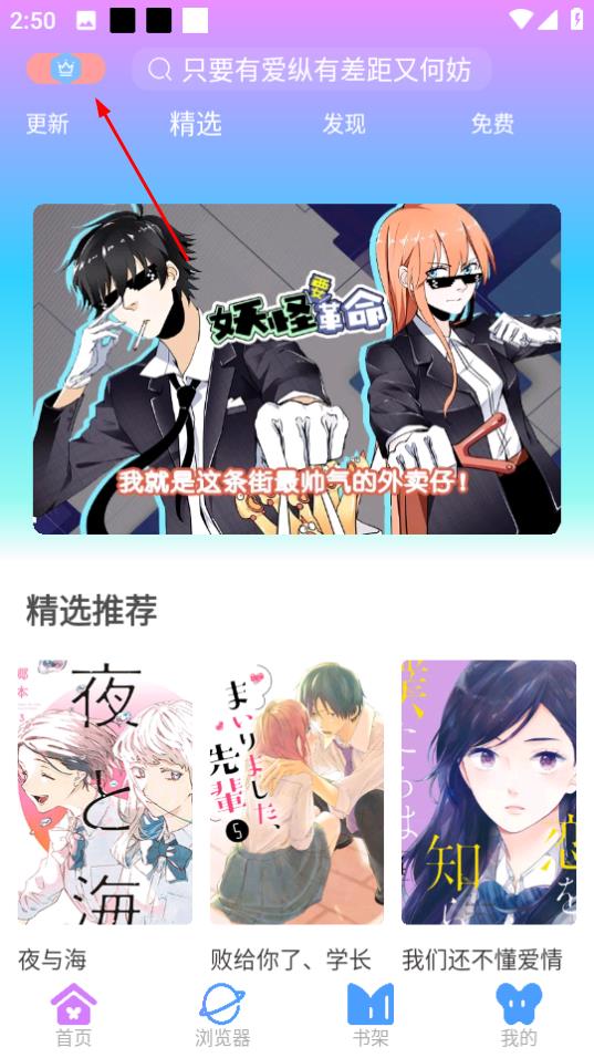 1、点击页面左上角的图标,弹出选择专属漫画的弹窗。