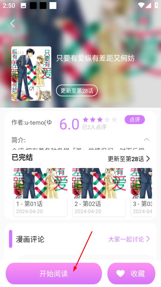 4、在只要有爱纵有差距又何妨详情页,点击开始阅读,即可阅读漫画。