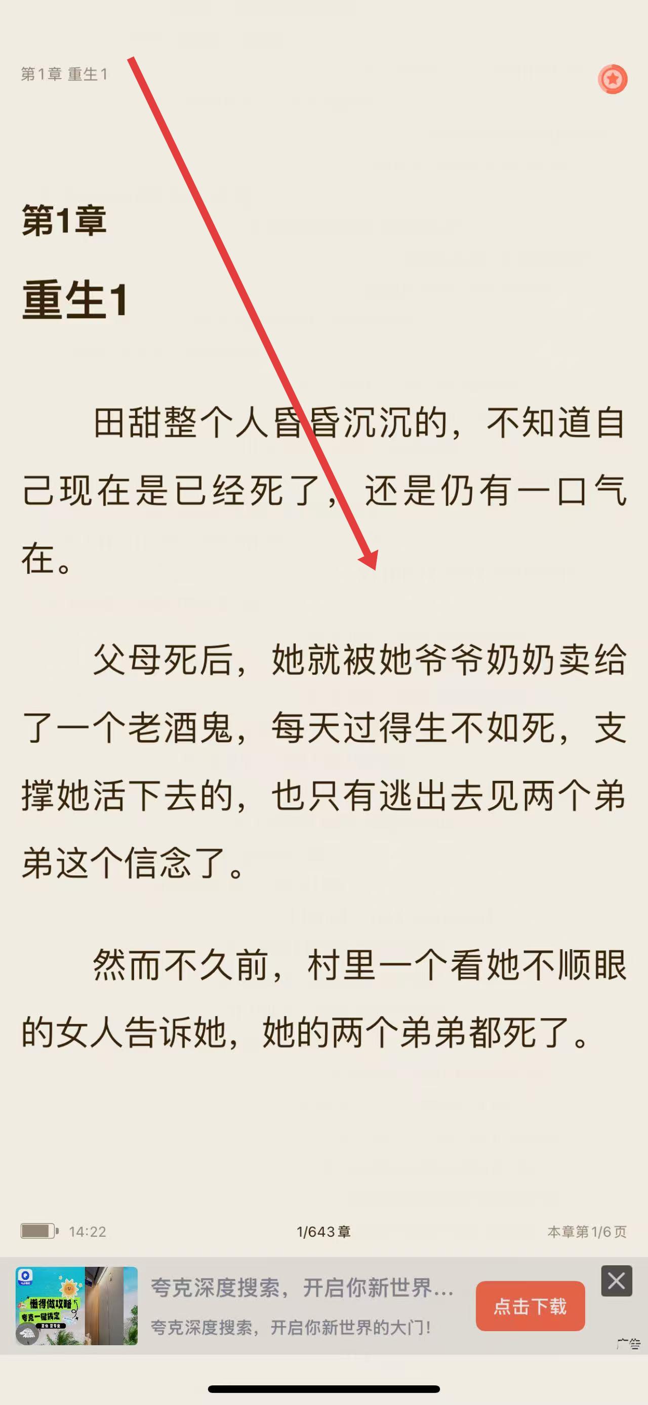 3、在小说详情页中,直接点击章节列表中的某一章节,即可开始免费阅读该小说。