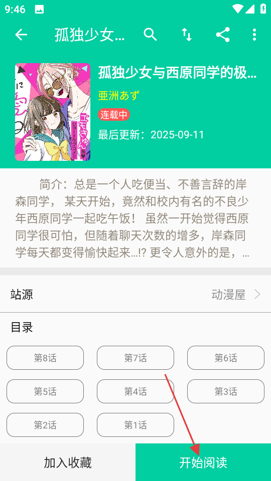 4、在详情页面,点击开始阅读,即可阅读该漫画内容。
