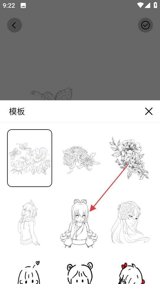 4、在弹出的模板列表中,选择喜欢的模板进行绘画。