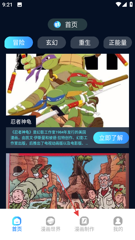 1、打开追漫大师,点击底部导航栏的漫画制作。